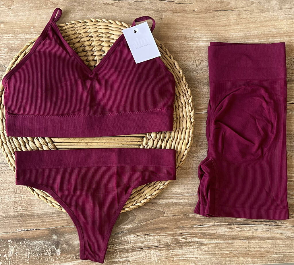 Diseñado para moverte con libertad y sentirte poderosa, este conjunto inlcuye top, bombis less y calza corta seamless de compresión suave. Su tejido acanalado realza tu silueta y acompaña los movimientos con comfort total.